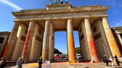 Vandalizaron con pintura la Puerta de Brandeburgo en la capital de Alemania: 14 detenidos