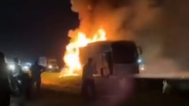 Se incendió un micro en la Ruta 2 y hubo demoras en la vuelta del fin de semana largo