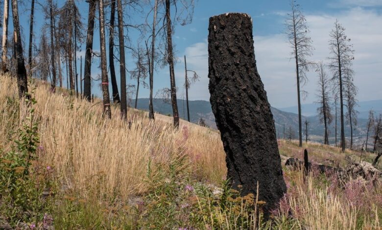 Una zona de bosque controlado en Nelson, Columbia Británica. Durante un incendio forestal, la vegetación baja y el contenido orgánico del suelo se queman, dejando normalmente árboles maduros chamuscados pero vivos. Foto Amber Bracken para The New York Times
