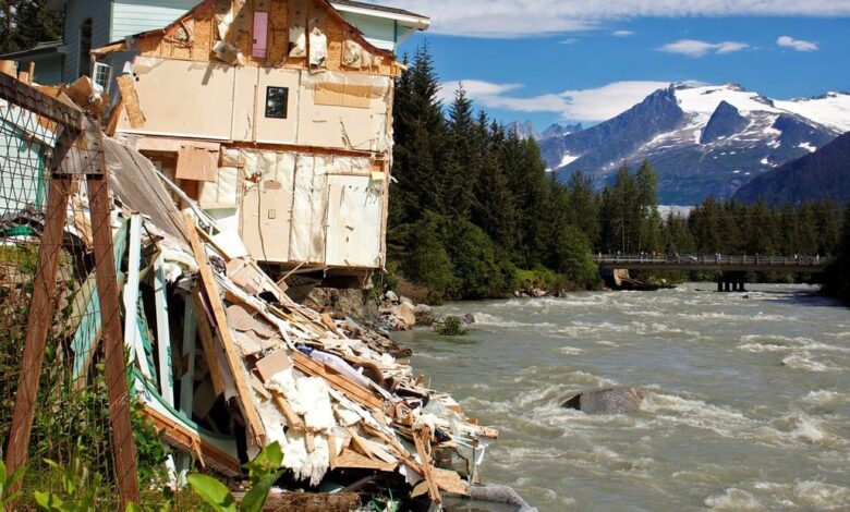 La destrucción se produjo el fin de semana cuando una «represa glacial» natural estalló en la capital de Alaska, aumentando los niveles del río Mendenhall a un nivel sin precedentes.