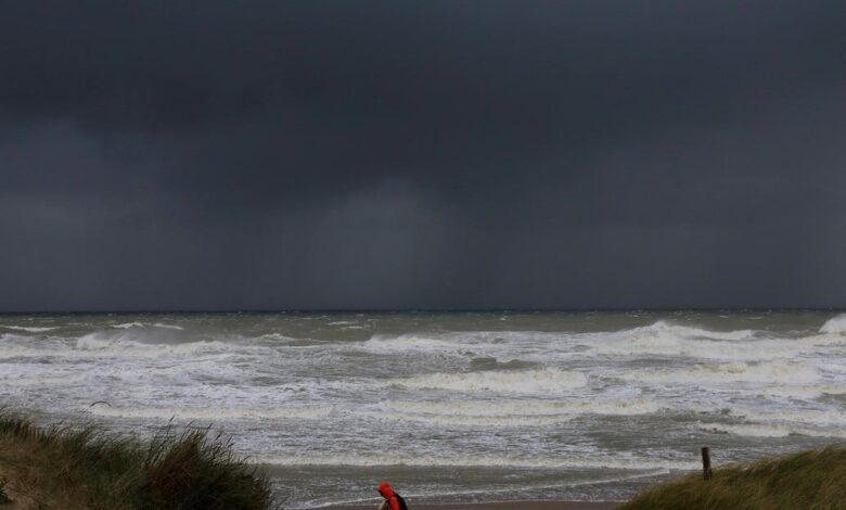 “Estaremos a más de 100 km/h por encima de la línea Nantes-Caen-Dunkerque”, advierte Guillaume Séchet. Météo-France también menciona olas de 8 a 10 metros de altura frente a la costa de Finistère – y de 6 a 8 metros más al sur en la costa atlántica – así como un «riesgo de marejada», un aumento temporal del nivel del mar. debido a la presión y al viento.