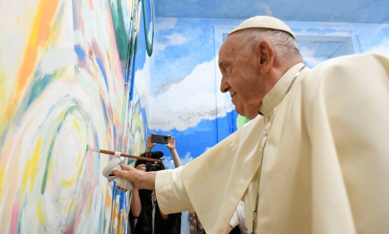 El mural, inscripto en el proyecto “Vida entre Mundos”, fue desplegado en las calles por donde pasó el pontífice tras arribar de Lisboa, donde participa hasta el domingo de la Jornada Mundial de la Juventud, que congrega a cientos de miles de jóvenes de todo el mundo.