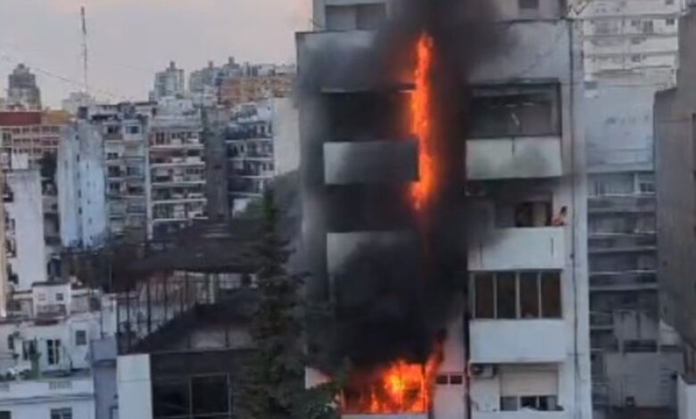 Las llamas que se elevan al cielo. El humo negro que amenaza a carbonizar el resto de los pisos del edificio. Y vecinos que se asoman al balcón con desesperados gritos de auxilio. Esas fueron las escenas que dejó el incendió de un departamento en Recoleta. Bomberos de la Ciudad rompió una puerta para ingresar y, por suerte, no encontró a nadie dentro del lugar.