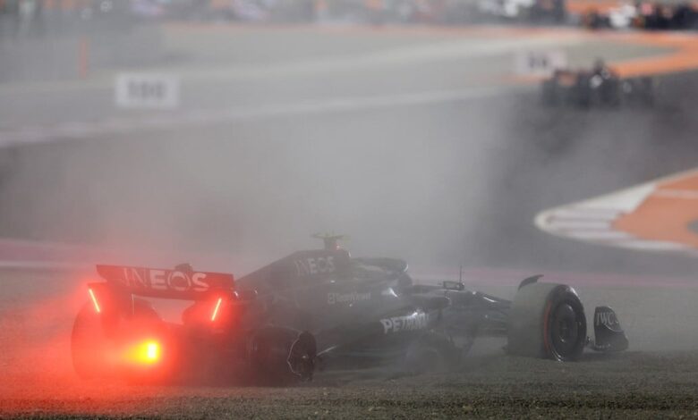 En la primera curva, apenas, hubo una catástrofe para Mercedes: los dos pilotos de su equipo Lewis Hamilton y George Russell se tocaron, lo que provocó el despiste y abandono del múltiple campeón mundial.