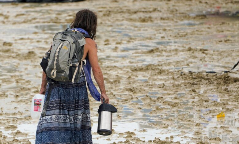 Todas las actividades de este festival contracultural, que atraía a unas 70.000 personas, fueron canceladas después de que la lluvia derribó las estructuras para bailes, instalaciones artísticas y otros espectáculos.