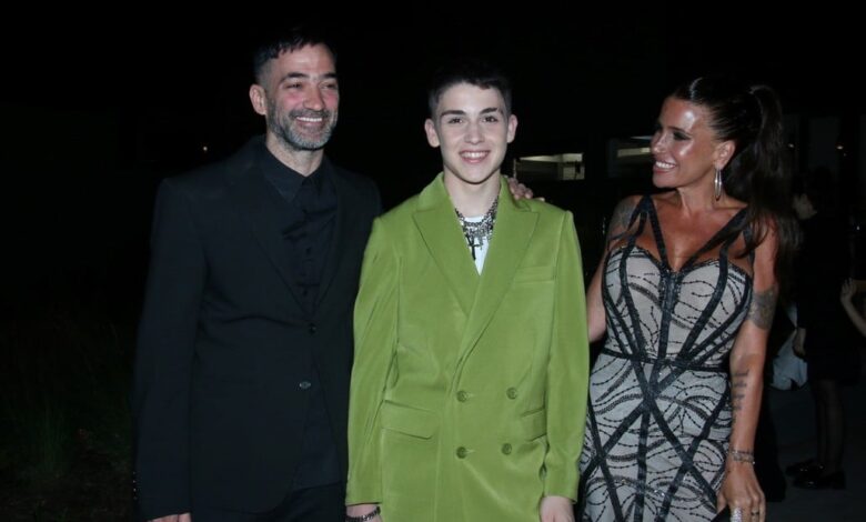 El cumpleañero se llevó la mirada de todos los presentes del evento con el look que utilizó para su festejo: el hijo de la actriz llegó vestido con un saco y pantalón verde en composé y con unas zapatillas cancheras que iban a tono con su look.
