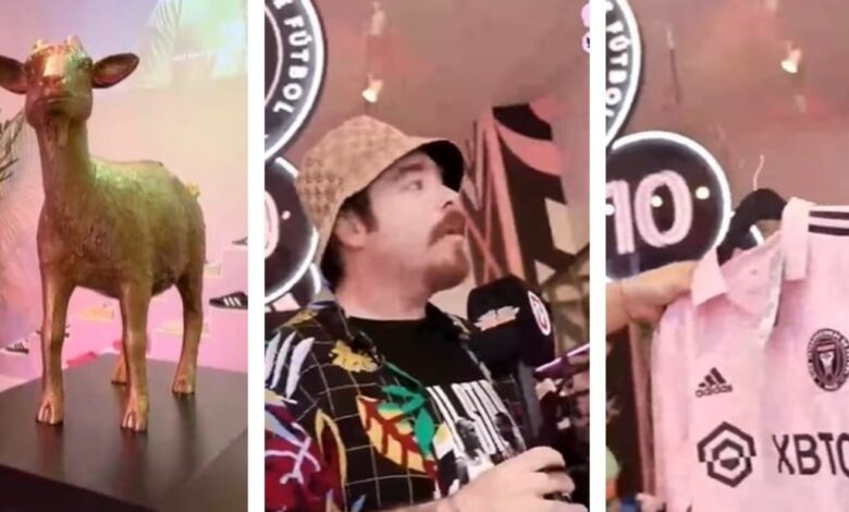 «Mirá que lindo… The Goat», dijo al descubrir una estatua de una cabra dorada en referencia al término «Goat» que significa «Greatest of all time», siendo «El mejor de todos los tiempos».