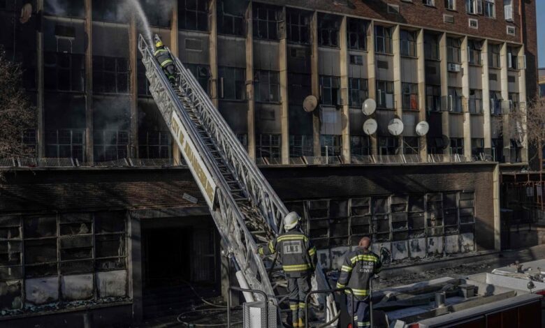 El fuego arrasó con un edificio de cinco pisos en Johannesburgo.