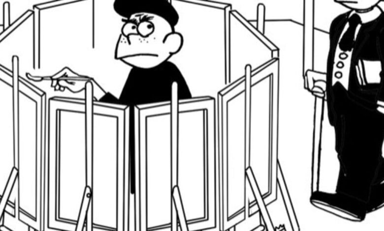 En este caso hay dos dibujos muy similares que retratan a un artista, atrapado entre lienzos mientras pinta un cuadro. En el camino pasa un señor que se encuentra con el obstáculo de las pinturas en ronda. Para encontrar las diferencias escondidas es importante prestarles atención a los pequeños detalles.