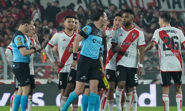 Todos los jugadores de River protestaron la decisión -y la interpretación- del árbitro. Todo indicaba que Bianchi había habilitado a su rival. Y quedó esa sensación que indica que el VAR busca cuando quiere encontrar algo. ¿Se conocerán los audios?