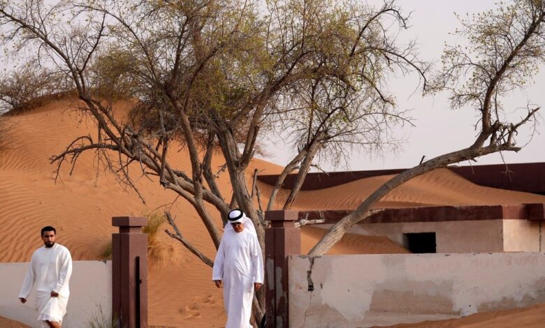 Enclavado entre dunas, a una hora de auto de los rascacielos de Dubai, un pueblo abandonado en el desierto en los años 90 se erige como una inquietante reliquia de la rápida urbanización de los Emiratos Árabes Unidos.